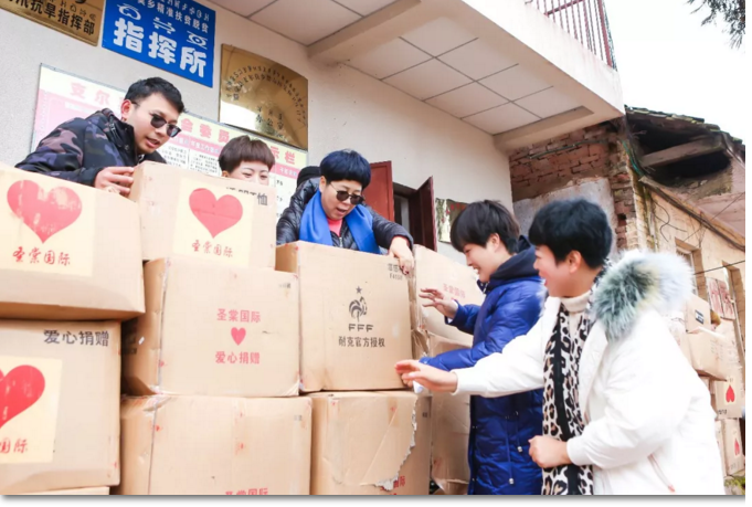 会后圣棠高层众人开始与大家搬运发放救助物资
